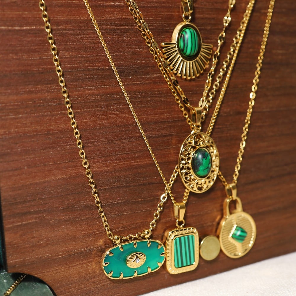 سلسال مع قلادة لون اخضر 4من Rony&Qafa